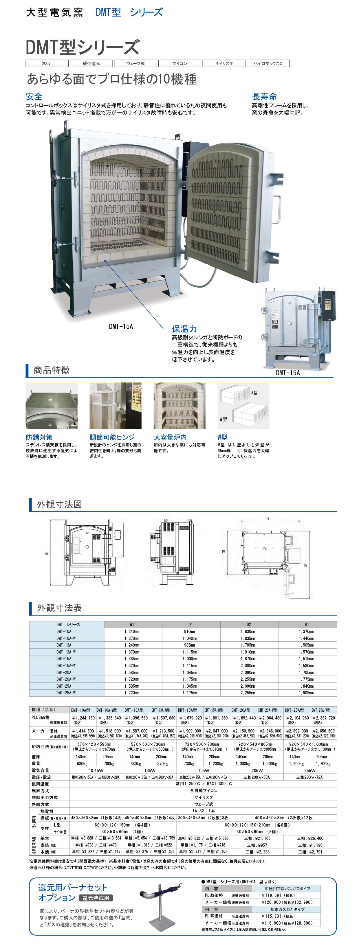 大型電気窯 DMT型シリーズ・DMT-10A型・10A‐W型・13A型・13A‐W型・15A型・15A‐W型・20A型・20A‐W型・25A型・25A‐W型