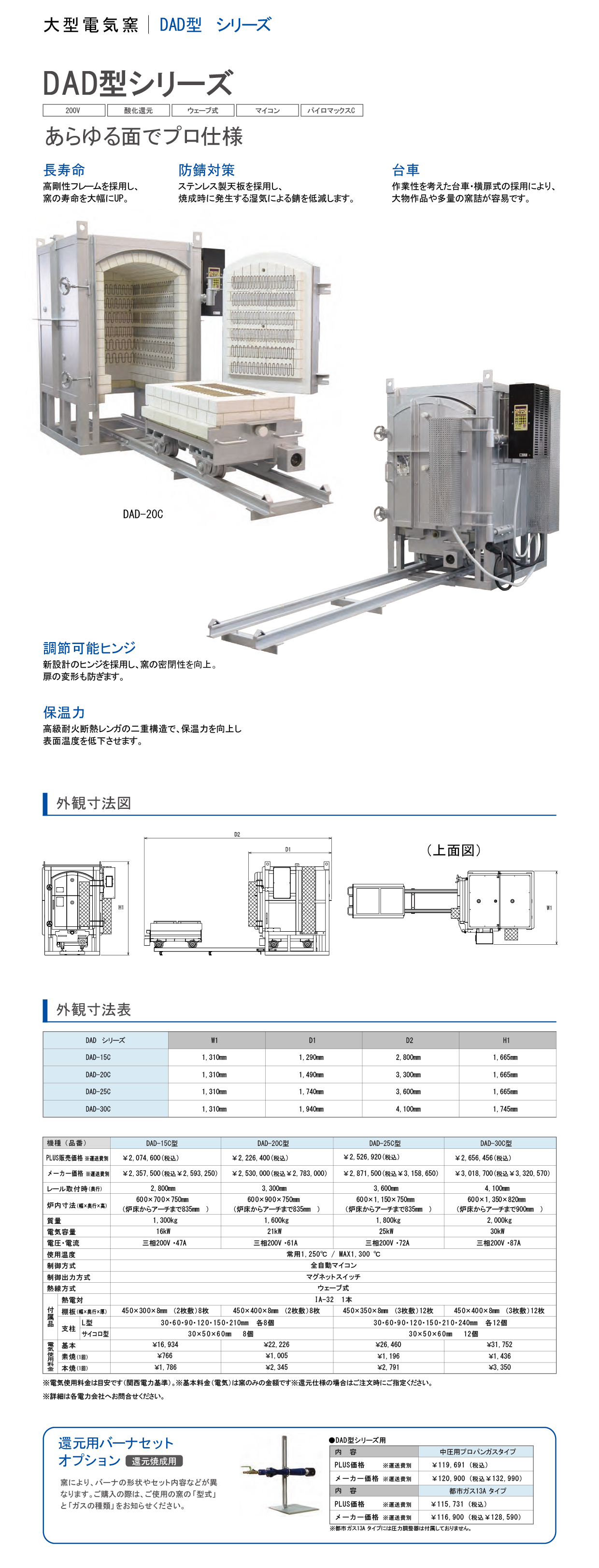 大型電気窯 DAD-15C・DAD-20C・DAD-25C・DAD-30C/還元用バーナー